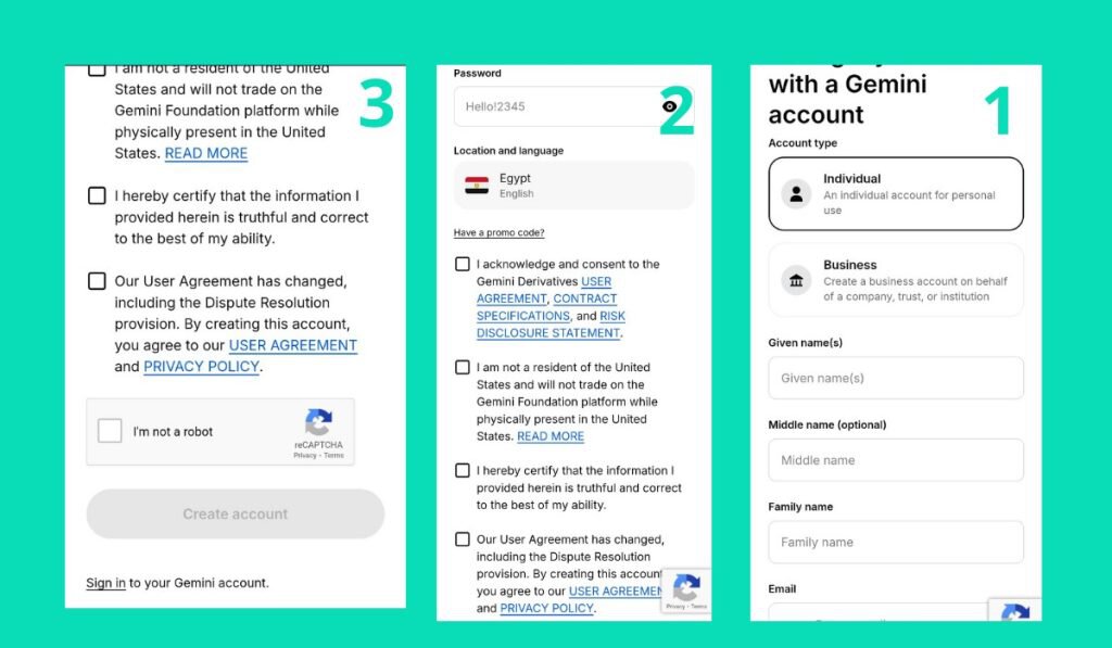 فتح حساب في Gemini بالصور ستجدها بالتفصيل كالآتي: