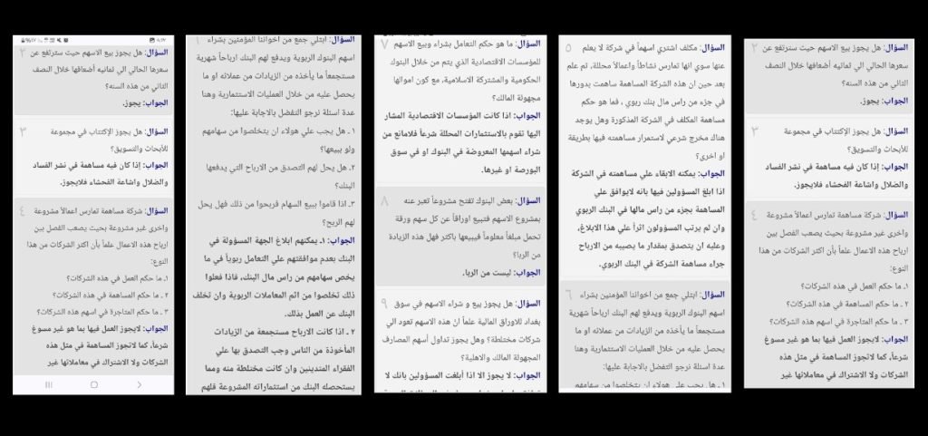 اتفق علماء المذهب الشيعي مع فقهاء المذهب السني على عدة محاور تبرز متى يكون التعامل مع منصات التداول حلال أم حرام والدليل على ذلك ما ورد عن الشيخ السيستاني الذي ورده كثير من الأسئلة عن المضاربة في البورصة، وأحكام الحصول على مكسب من المضاربة،، وفيما يلي صورة من الأسئلة وإجابة الشيخ عنها: